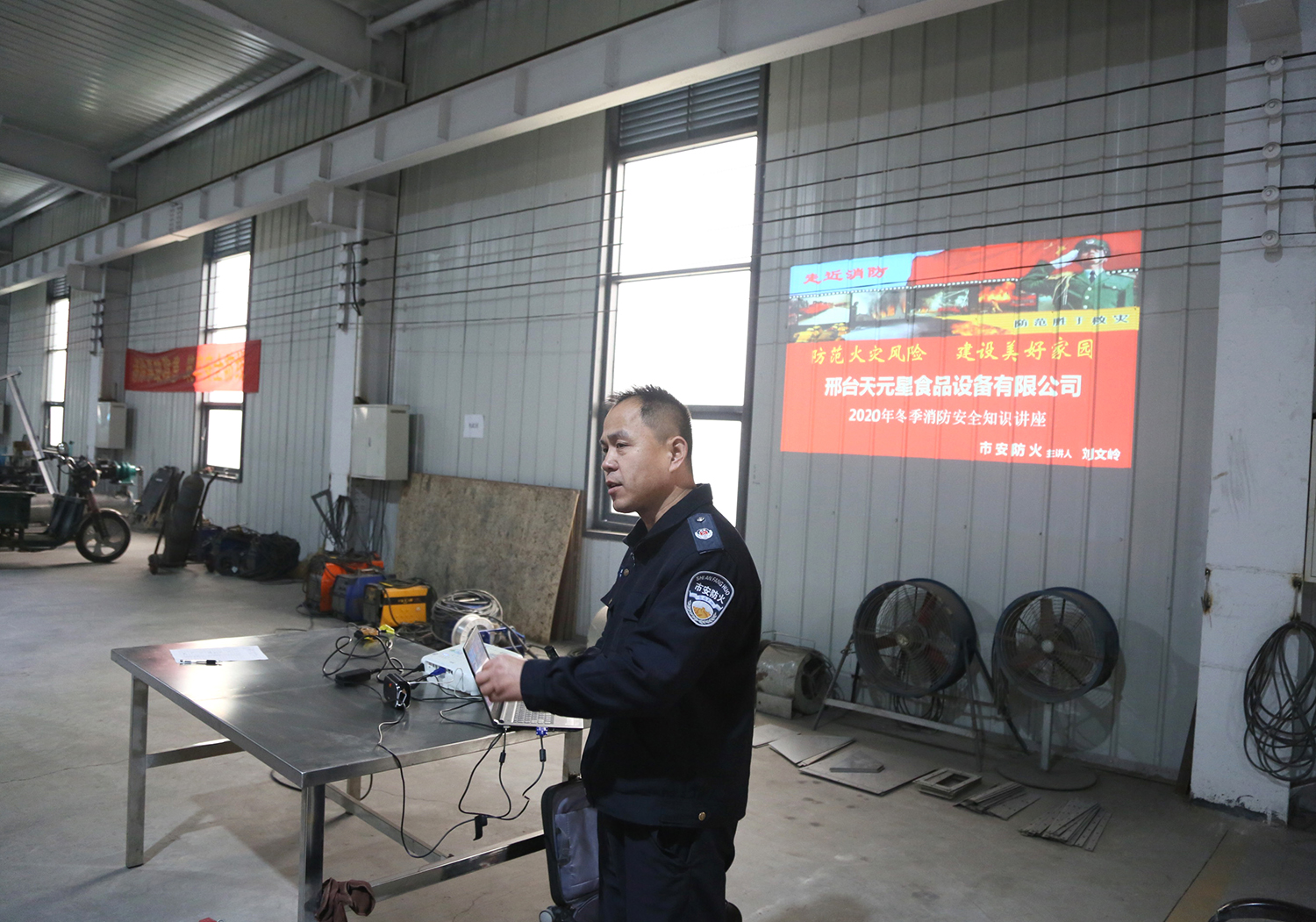 2020年11月24日,天元星食品設(shè)備有限公司冬季消防安全培訓(xùn)在2號(hào)車(chē)間2層舉辦,下午1點(diǎn)整,車(chē)間全體人員準(zhǔn)時(shí)到場(chǎng),除一線(xiàn)車(chē)間外,各部門(mén)派了一名代表參加,會(huì)后各代表向本部門(mén)傳達(dá)了培訓(xùn)內(nèi)容。市安防火劉文嶺教官向大家講解了冬季安全消防的重要性,列舉了大量的實(shí)例,讓大家認(rèn)識(shí)到防火的重要性,和發(fā)生火災(zāi)時(shí)的自救,逃生技巧。