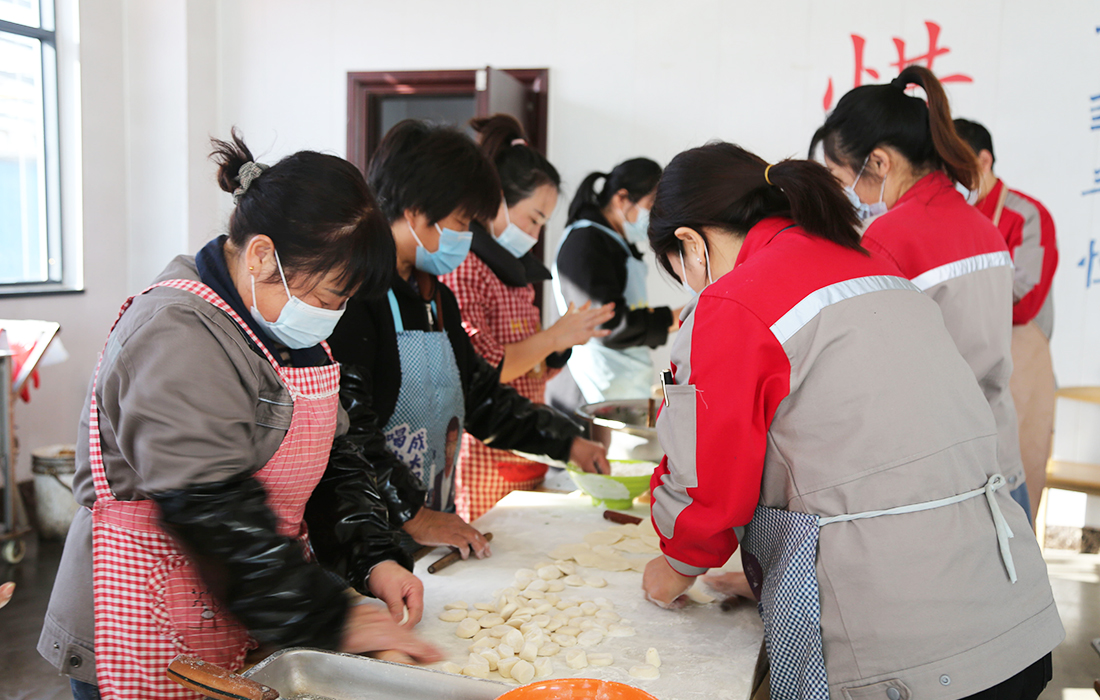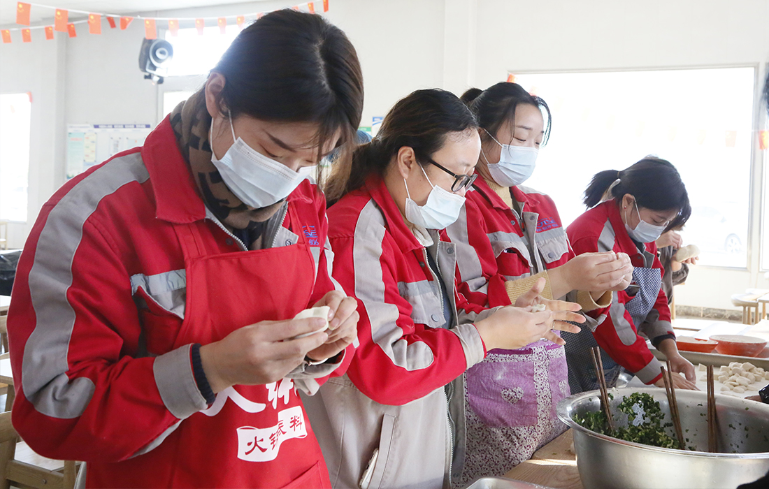 活動現(xiàn)場,員工們積極參與,熱情高漲,整個過程中歡聲笑語不斷,從揉面團(tuán)、搟餃子皮、制作餡料到包餃子等工序都是由全體員工分工合作完成。在包餃子過程中還特意挑選14個包了花生的“幸運(yùn)餃子”作為員工抽獎使用,吃到“幸運(yùn)餃子”的員工第二天中午可以免費(fèi)就餐。