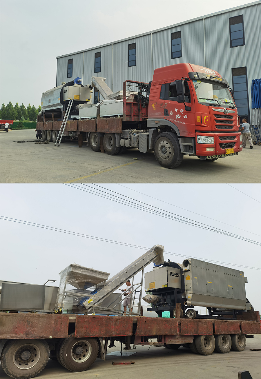 安徽750炒機(jī)一臺(tái),爬坡皮帶一臺(tái),小料車兩臺(tái)發(fā)貨