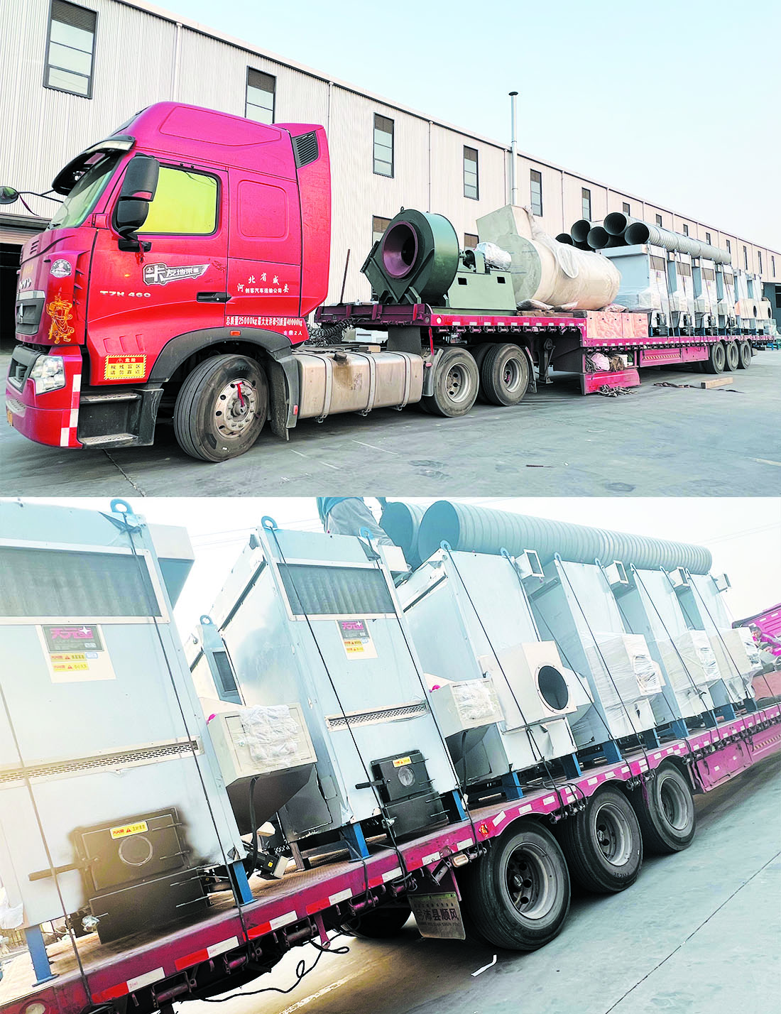 遼寧省錦州市新款生物顆粒熱風(fēng)爐一體機(jī)(120型4右8左)12臺(tái),30kw風(fēng)機(jī),水幕除塵器發(fā)貨