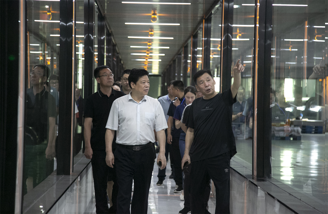 期間天元星董事長趙雙革帶領(lǐng)董主席和各位代表一同參觀并介紹廠區(qū)車間。