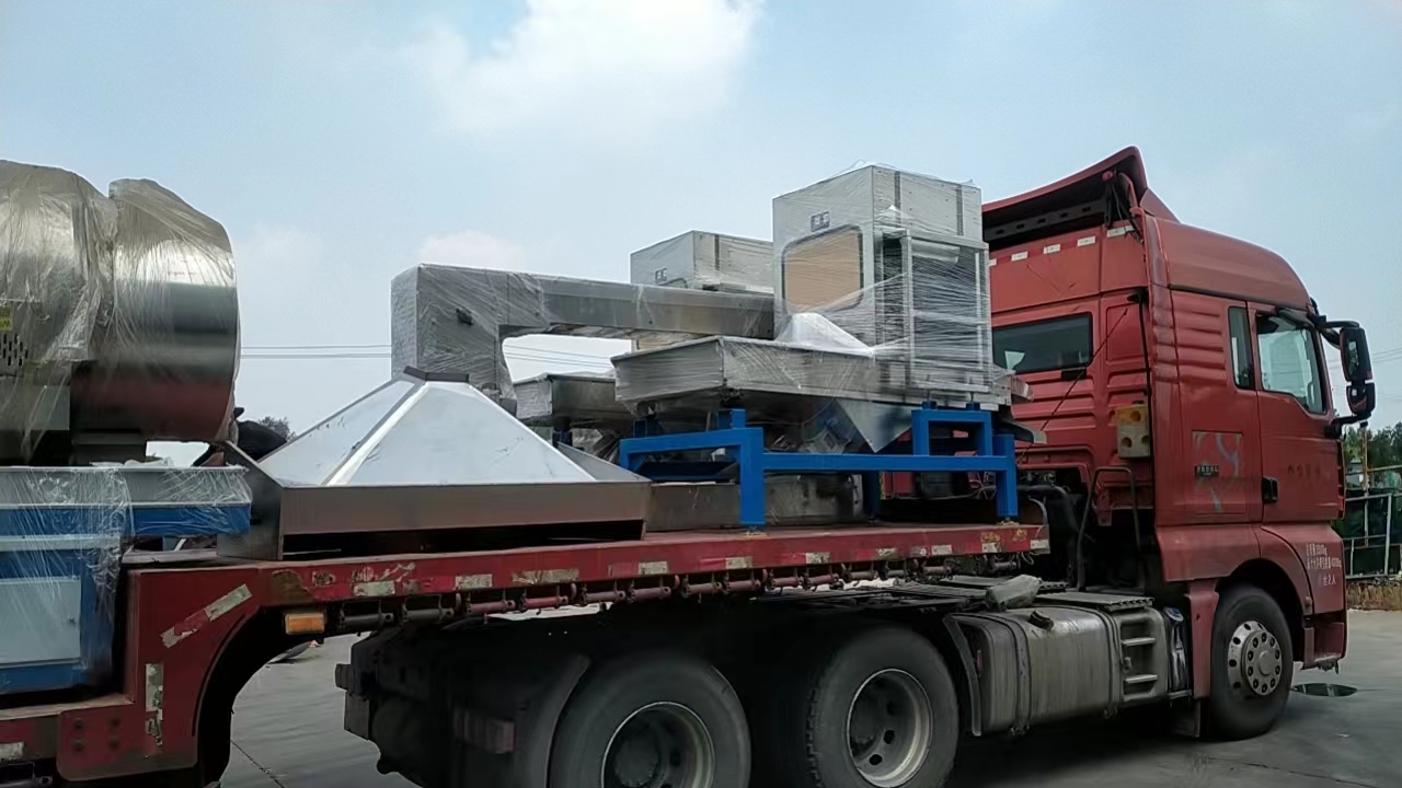 新疆發(fā)貨花生炒機,特制生物顆粒燃燒機,多級振動篩選機,多功能冷卻機