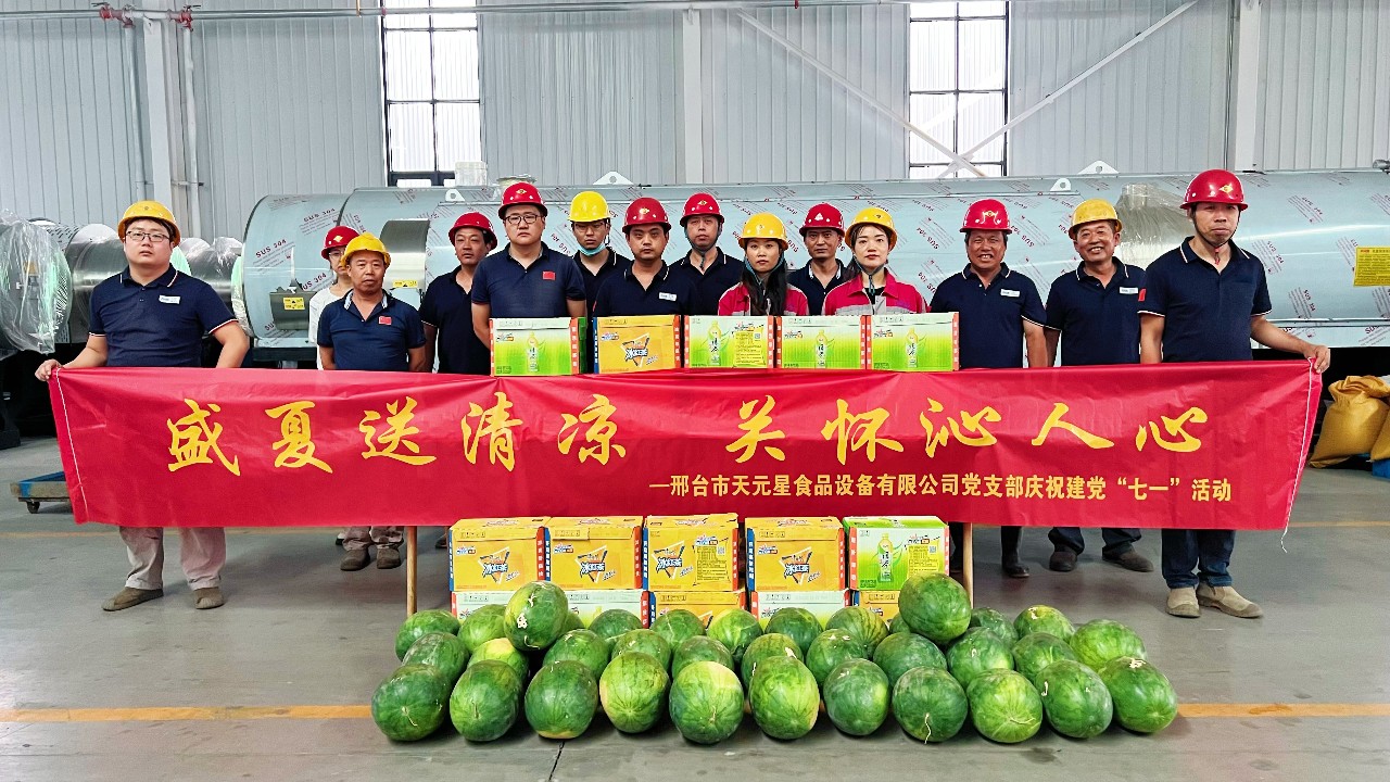 7月1日下午,天元星黨支部開(kāi)展“慶祝建黨103周年七一系列活動(dòng)”之關(guān)愛(ài)慰問(wèn)員工活動(dòng)。董事長(zhǎng)趙雙革指出,近期節(jié)節(jié)攀升的高溫給大家的生活、工作帶來(lái)很大的影響。但,我們“天元星人”不畏高溫,一如既往的