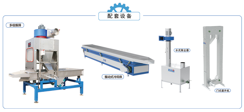 6.炒好的花生經(jīng)過冷卻、篩選及配套除塵系統(tǒng),形成一條生產(chǎn)線。