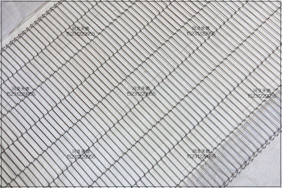 乙字輸送帶多用于食品的輸送,常見輸送巧克力、薄脆餅干、蛋糕加工線、油炸機設(shè)備、烘干設(shè)備等等,但是乙型輸送帶也可以用在裝飾行業(yè)中使用,可以用在室內(nèi)的裝修,酒店裝飾,書店裝飾等等。下面天德介紹一款可以做金屬網(wǎng)帶使用也可以做裝飾網(wǎng)使用的乙字網(wǎng)。