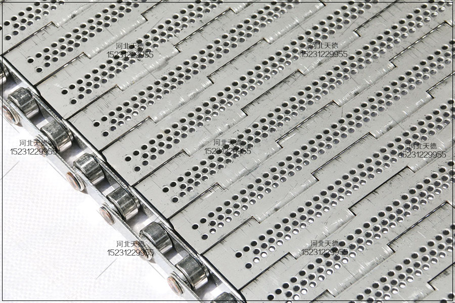 這款鏈板輸送帶采用不銹鋼304鋼板折彎沖孔完成的,所有尺寸都是根據客戶的的要求來生產加工的。