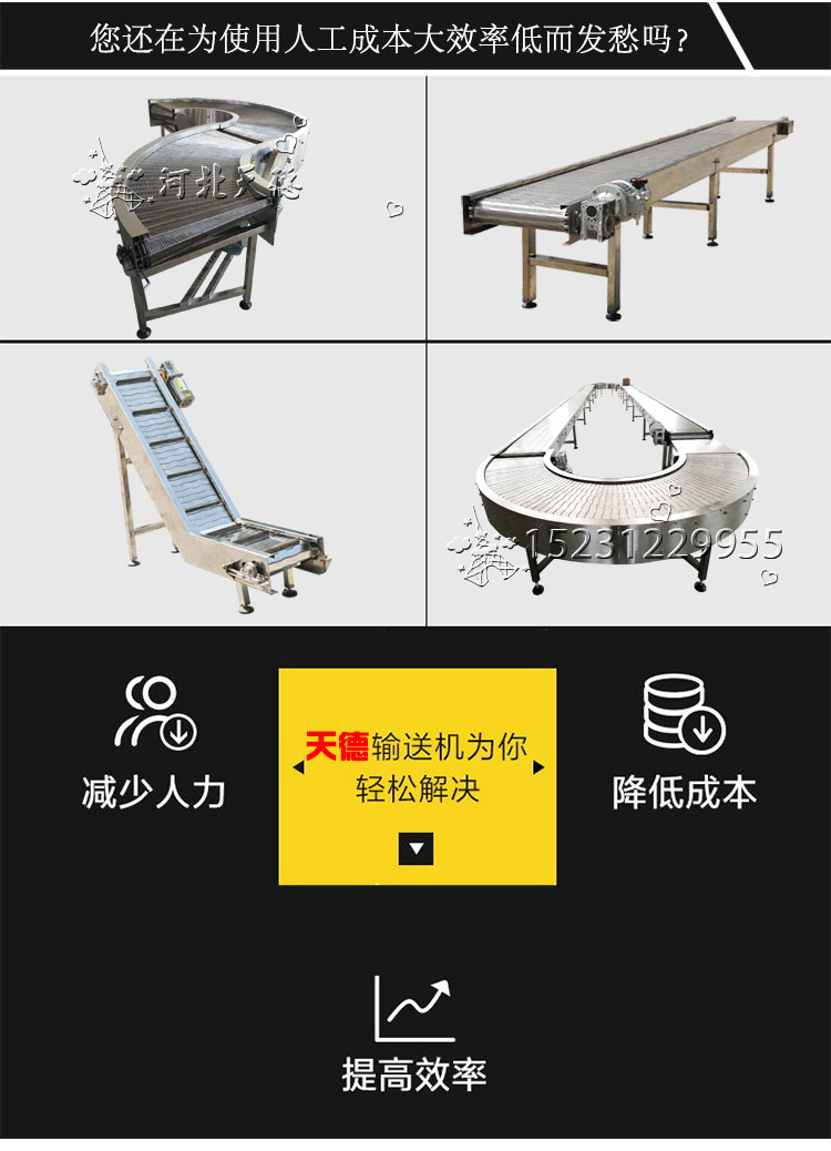 鏈板輸送機可以滿足飲料貼標、灌裝、清洗等設備的單列輸送的要求,同樣也可以使單列變成多列并行走緩慢,從而產生儲存量,滿足殺 菌 機、儲瓶臺、冷瓶機的大量供料的要求。鏈板輸送機可以將兩條鏈板輸送線的頭尾部做成重疊式的混合鏈,使得瓶(罐)體處于動態過度狀態,使輸送線上不滯留瓶子,可以滿足空瓶及實瓶的壓力和無壓力輸送。鏈板輸送機廣泛用于食品生產線、罐頭、藥品、飲料、化妝品和洗滌用品、紙制品、調味品及煙草等的自動輸送、分配和包裝的連線輸送。
